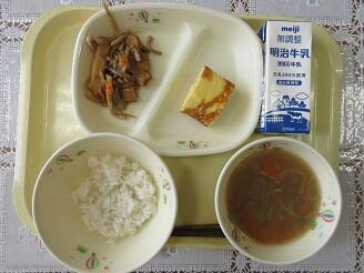 今日の給食は、地産地消の日で、セルフ五目ご飯(ご飯・五目ご飯の具)、牛乳、焼き印入り県内産卵焼き、大根と油揚げの味噌汁です。高根沢町で生産された物は、味噌、にんじん、干ししいたけ、大根、ねぎ、米です。今日もたいへんおいしく頂きました。