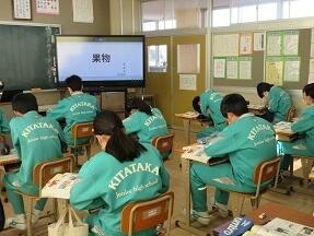 「鰹節-世界に誇る伝統食」の説明文の内容を要約する授業が展開されていました。みんな真剣に音読を聴いていました。