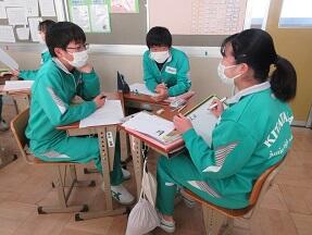 「走れメロス」の教材で、王様とメロスの人物像を個人で捉えて、その後グループで共有していました。感染症対策をとってのグループ学習でした。