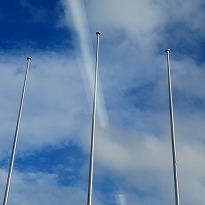 (足場から青空が見えます) (18時頃 校庭が大雨で湖に)