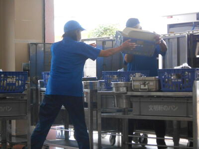 給食センターの方が、丁寧に給食を運んでくれます。いつもありがとうございます。