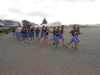 【駅伝朝練習】夏休み明けから取り組んできた駅伝の練習も県大会及び地区大会開催が決まり、一段と熱が入ってきました。今年は例年と違い、競技場(トラック)でのタイムレースとなりました。今日も200mのトラックをペースを決めて走り続けていました。辛いけどがんばれ!