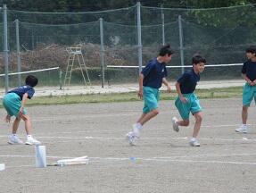 今日の3時間目、2年生が体育でリレーのバトンパスの練習をしていました。練習の後に、実際に走っていましたがなかなか見応えがありました。