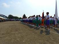 ●練習内容は、「開会式」の入場と整列、「開会式」から退場の練習を行いました。その後、綱引きの入退場、騎馬戦の入場と試技、退場の練習をしました。休憩後、紅白2会場に分かれて「応援合戦」の練習をして終了しました。