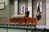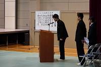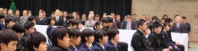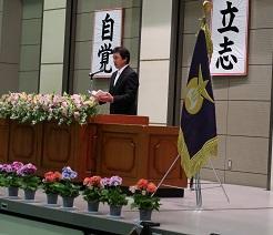 【3年生を送る会】生徒会長から3年生へお礼の言葉です。