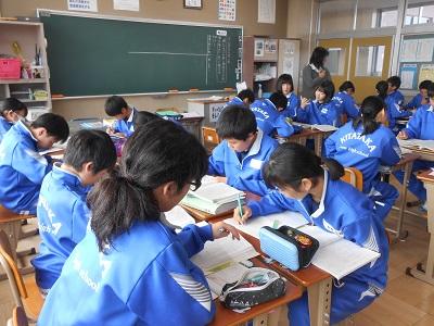 2年3組「国語」文学の筆者の気持ちをグループで調べていました。