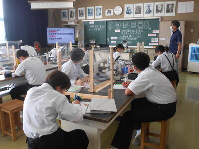 1年3組「理科」種子植物のなかま分けを実際に顕微鏡を使って確認していました。理科は実験の準備が大変です。
