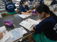 1年2組「数学」式の計算で、小学校で学んだ( )を利用して簡単に解ける方法を学んでいました。