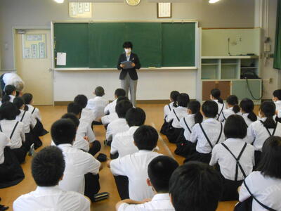 1年生は全クラスが同じ資料「いじめのない世界」を通して、いじめとふざけあいの違いや相手の気持ちなどを理解することについて学んでいました。