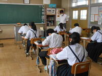 3年3組は「花火と灯ろう流し」という資料を通して、日本の年中行事の思いについて学んでいました。