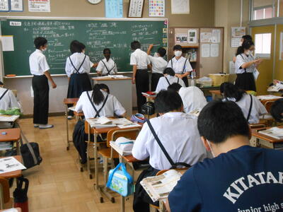 1年3組「社会」大化の改新後、農民の暮らしについて学んでいました。授業者は教育実習生です。