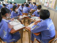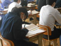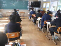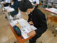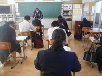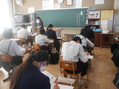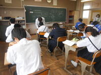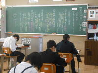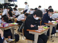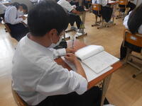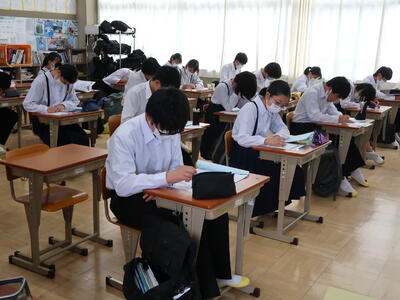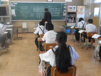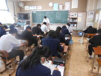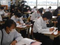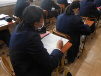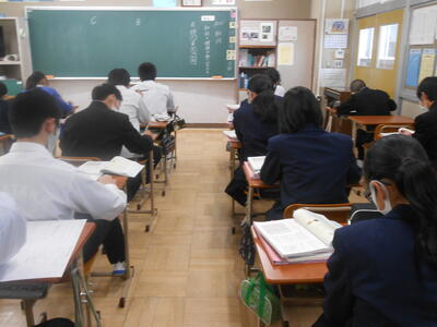 今日もあたたかな日となりました。しかし、朝夕の冷え込みは少しずつ身体に影響し、登校時の服装も1枚多く着込んでいるようです。今日は「読書の日」です。本校では始業時間の後10分間の「読書タイム」を設定し、静かに本を読んでいます。年間で1万ページ以上読んだ生徒には年度末に表彰しています。読むことで主人公の心情や情景を捉え、自分の人生の糧になる生徒が増えることを望んでいます。