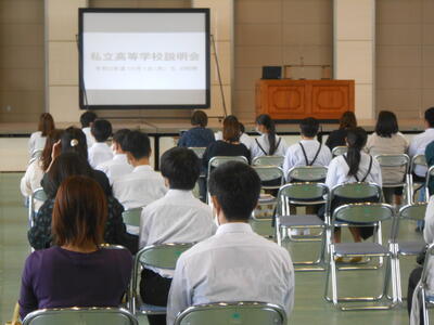 さて、13:10から「私立高校説明会(6高校)」が行われます。今年度は新型コロナウィルス感染症対策のため3年生と3年生の保護者のみの参加となりますので御了承願います。なお、会場ではマスク着用としますのでお願いいたします。