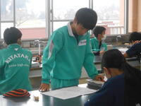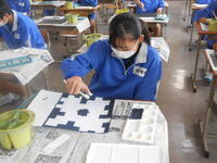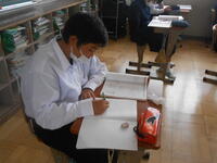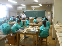 1年2組「技術」木材加工の部品を丁寧に仕上げていました。