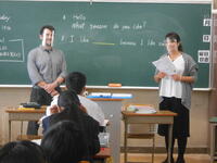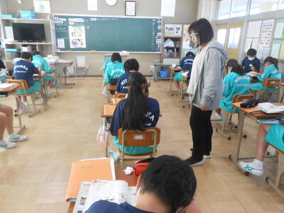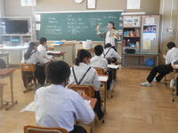 1年1組「英語」本文の内容を理解するために単語の意味を挙手して発表していました。