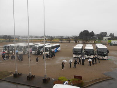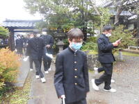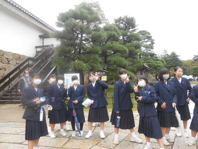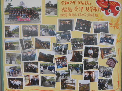 朝から雨が降る中、3学年一緒に会津若松方面に見学旅行に行ってきました。保護者の送迎も御協力いただき、スムーズに登下校することができました。ありがとうございました。昼頃には雨が上がり、鶴ヶ城でのクラス写真も予定どおり撮影することができました。新型コロナウィルス感染症の影響で生徒の皆さんには辛い思いをさせてしまいましたが、今日の旅行が楽しい思い出となれば幸いです。