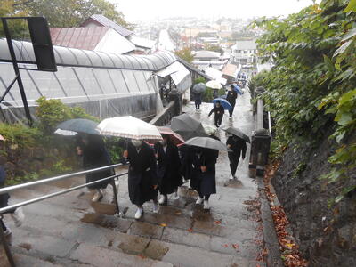 今日も秋の爽やかな日になりましたが、明日からは「晩秋の冷たさ」で、雨が降り最高気温が15℃とのことです。明日、楽しみにしている見学旅行が心配です。寒さと雨の対策が必要ですね。本日通知いたしますが、車での送迎を予定している方は、安全面を最優先に考え、サッカー場側入り口から入り、正門から出る一方通行の導線で行います。集合時刻は6:45、出発時刻は7:00、到着時刻は17:45になりますのでよろしくお願いいたします。(※事故等で大きく時間が変更する場合は緊急メールでお知らせいたします)