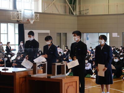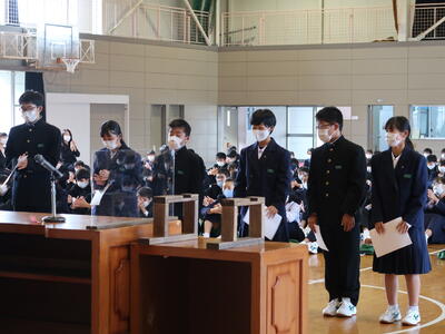 各学年代表の生徒が1学期の生活や学習の振り返りを発表しました。