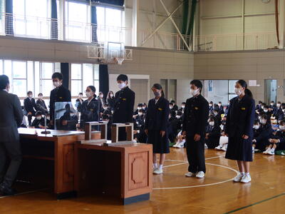 令和2年度「合唱コンクール」が本校体育館で行われました。例年と違う会場、無観客の中での開催でしたが各クラスとも素晴らしい発表でした。声量やハーモニーにより、わずかの差でしたが、最優秀賞 3年3組、優秀賞 3年1組・3年2組と3年生の頑張りが評価されました。全クラスの動画につきましては準備ができ次第御案内いたします。なお、ID・パスワードが必要になります。お子様を通して御連絡いたします。