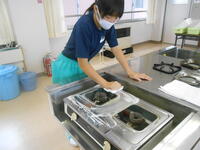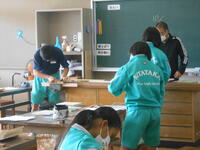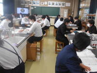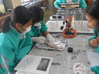 1年3組「理科」無脊動物の体のしくみについて、イカの解剖を通して区らしく理解していました。