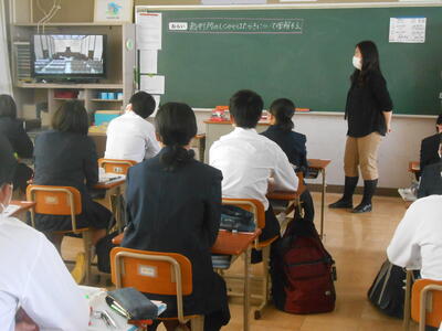1年2組「数学」時間と距離について方程式を利用して解いていました。小学校からの積み重ねが大切です。