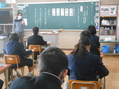 3年3組「国語」万葉集・古今和歌集の内容について学んでいました。