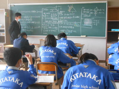【授業参観】3年1組「数学」2次関数とグラフです。数学はいかに多くの問題を素早く解くかが大切です。私立高校の試験まで2か月となりました。