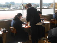 ここ数日、秋晴れの爽やかな日が続き、窓越しではカーテンで仕切っていても暖かく感じます。中禅寺湖や那須連山は紅葉の見頃を迎え、平日でも道路の渋滞が発生しているようです。今週の木曜日には「合唱コンクール」が行われますが、生徒は集中して授業に取り組んでいました。
