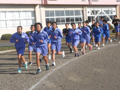 【駅伝練習】県駅伝競走大会(11/7)に向けて再スタートしました。現在、足や腰に負担がかかり痛みがある生徒もいますが、風邪を引かずに県大会でベストの走りを期待しています。