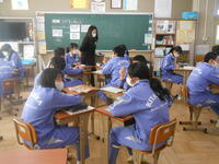 1年3組「英語」単元のまとめで学習プリントを実施していました。