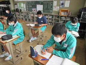 葉の作りと働きについてまとめをしていました。理科の授業は今週から、どうしても必要な実験は感染対策を十分にとってグループで実施することにしました。