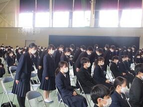 今日、8時45分から同窓会長さん、副会長さん参加の下もと、同窓会入会式を実施しました。みんな立派な態度で臨むことができました。これで明日の卒業式が終われば歴史と伝統ある北高根沢中学校の同窓生です。