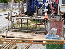 〇コミセン駐車場では・・・・・・東小学校の新校舎建設関係で、昨日から「地質調査」がはじまりました。 4カ所、調査するようですが、この2日は2カ所同時に、ボーリングしています。約80m掘り進み、地質を調べるそうです。