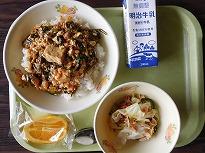 内容は、今日の給食メニューから、主食、主菜、汁物、果物などをバランス良く残さず食べることがスポーツをする人には重要だという話でした。 朝、昼、晩と栄養のバランスよく食べることを強調していました。