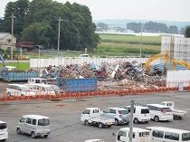 〇旧町体育館の屋根が解体・・・・・・今日、校舎の2階から北側を眺めると、旧町体育館の屋根全体が落とされていました。
