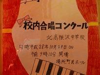 〇校内合唱コンクール ポスターを配布・・・・・・美術部と生徒会役員で作成した「校内合唱コンクール」のポスターを、学区内の4小学校へ配布したいという話を聞いたので、午前中、私が4つの小学校をまわり、「ポスター」を配布してきました。