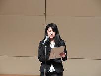 ●閉会式で、講評を審査員の吉澤文子先生にお願いしました。 吉澤先生は、北中が母校であるそうで、懐かしく感じられたようです。 次年度へ向けた話としては、