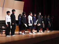 ●もう一つのアトラクションは、仙台市内6中学校160名の合同合唱でした。「BELIEVE(ビリーブ)」と「復興ソング『仲間とともに』」の2曲です。男子の方が声がよく出ていました。160名の大合唱、私も含めて参加した校長先生方も涙が出てきてしまいました。