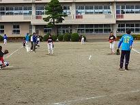 ●ソフトボール部が練習試合をしていました。馬頭中と馬頭小学生連合チームとの3チムでの練習試合でした。
