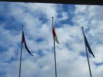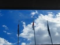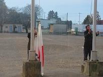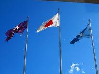 (玄関に小さな門松が)         (国旗掲揚塔から 今日の青空)