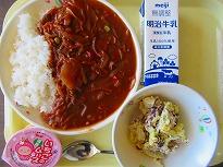 (今日の給食 ハッシュドビーフ他) (強風で町旗と校旗は降ろしました)