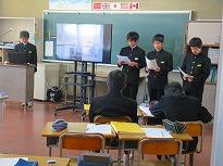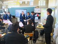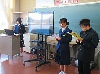 ●2年生は、「総合的な学習の時間」の参観をしていただきました。以前、体験したマイチャレンジをパソコンに打ち込み、プレゼンで発表しました。 グループごとに役割を決めて、脚本を作り発表していました。マイチャレンジの体験が、将来の夢や職業につながる生徒もいると考えています。