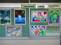 (美術室廊下の掲示物 下野教育美術展の入賞作品)