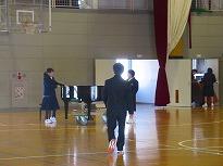 ●入場から退場までの式の流れの確認から、起立、礼、着席のタイミングなどについての練習をしていました。 私も北中の「対面式」の卒業式での証書授与の仕方の確認ができてよかったです。