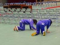 ●それぞれが自分の分担の仕事を黙々と行っていました。最後に、床のシートをたたんで丸めて仕事が終了しました。1時間かからずに、片付けが終了しました。