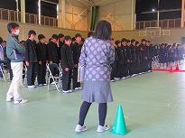 ●入場から式次第にしたがい、退場まで流した練習を行いました。その後、「起立・礼・着席」の練習と「式歌・全校合唱」の練習を行いました。5回、10回と「礼」の練習をしていくと、全員が同じ動きで「礼」ができるようになってきました。「歌」につても、生徒全体の声量が少しずつ上がってきました。