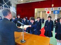 ●卒業証書授与では・・・私は「対面式」の卒業式ははじめてなので、校長が予想以上に緊張することが分かりました。 その緊張とは、証書を授与する際、360度からの視線を受けるということです。 校長が汗をにじませながら呼名して証書を渡す快い緊張感を味わうことができました。 3年生、一人ひとりが練習どおりに証書を受け取ってくれて安心しました。