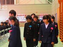 ●「校歌」では・・・生徒たちの声の大きさプラス、来賓の皆様や参列された保護者の皆様が北中OB,OGの方が多くいらっしゃるということで、「校歌」が体育館中を響き渡るような感動を覚えました。式前に生徒会長の声かけもあり、「今年度一番の校歌」ができたように感じました。