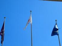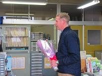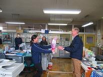 ●大きな花束を持った榎本先生を囲んで、卒業生や親の会のお母さん方も入って国旗掲揚塔前で記念撮影を行いました。のちほど、写真を掲載します。