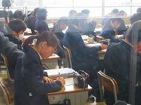 <校長室コラム「県立高校一般受検(学力検査)」> 県立高一般受検を希望した全員が受付を済ませ、5教科の「学力検査」に挑戦しています。 現在、13時45分ですので4教科目の「理科」のテストに取り組んでいるところです。 最後に、「英語」のテストを受けて終了します。